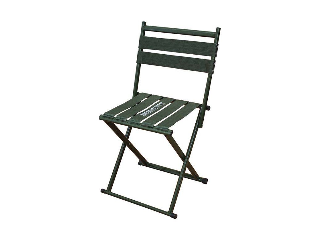 Jednoduchá stolička, klasický kříž s opěradlem z ocelových trubek průměru 26x16 mm a nylonových popruhů místo celtoviny. Díky těmto použitým materiálům má stolička vysokou nosnost 200kg a je překvapivě pohodlná a lehká. Váží jen 2kg. Rám je komaxitovaný zelenou barvou a popruhy jsou upevněny uvnitř rámu pomocí ocelového drátu. Výška sedačky je po rozložení 41cm a sedák má 35 × 35cm. Celková výška i s opěradlem je 75cm.Material: 600D Oxford NylonRozměry: 35 x 35 x 75 cmNosnost: 200 kgVáha: 2 kgTransport: 52 x 40 x 8 cm